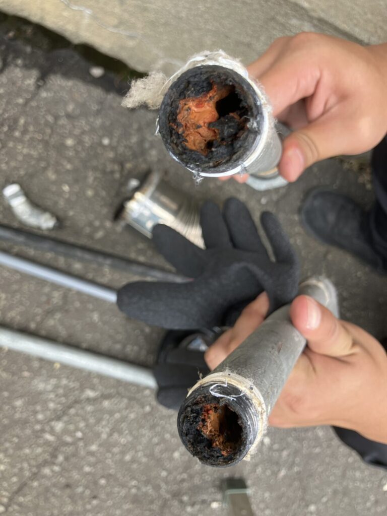 今回ご案内させていただく水道トラブル事例は給水管(鋼管)の錆びつまりによる給水管交換です。