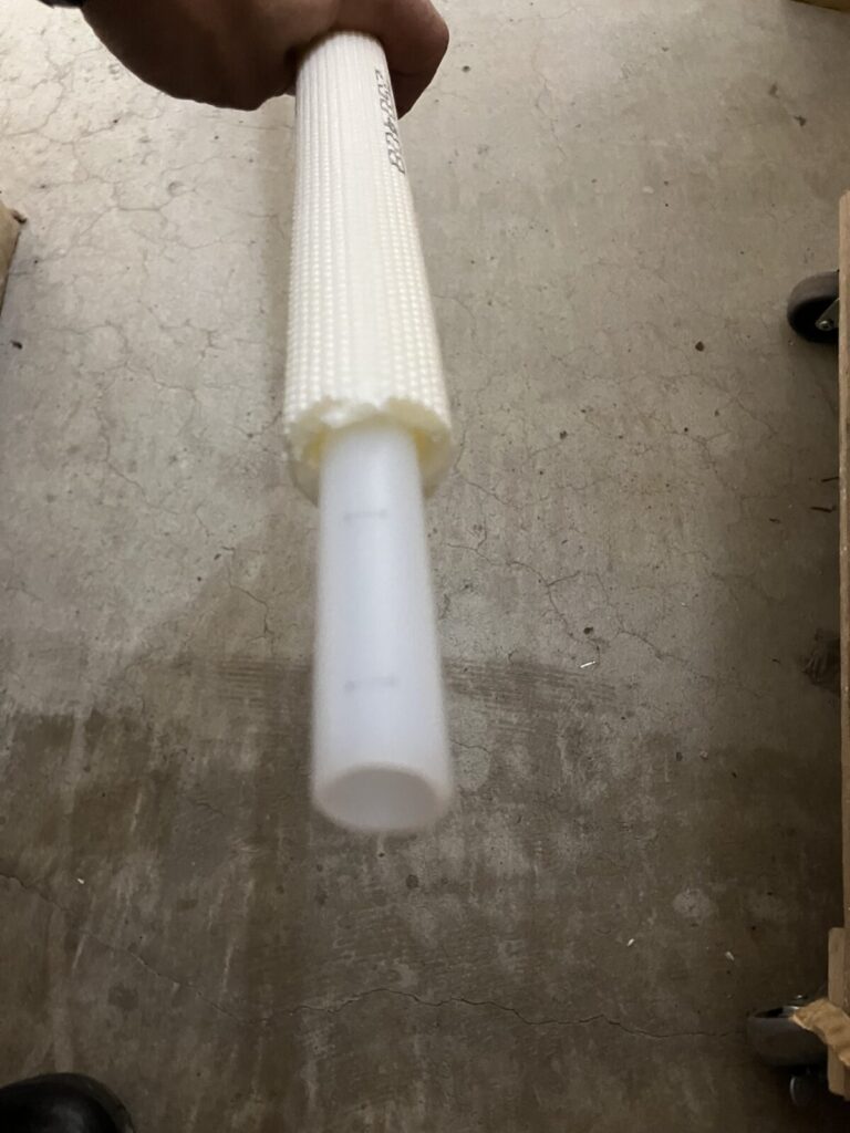 下記写真の樹脂製、架橋ポリ管に取り換えさせていただきました。