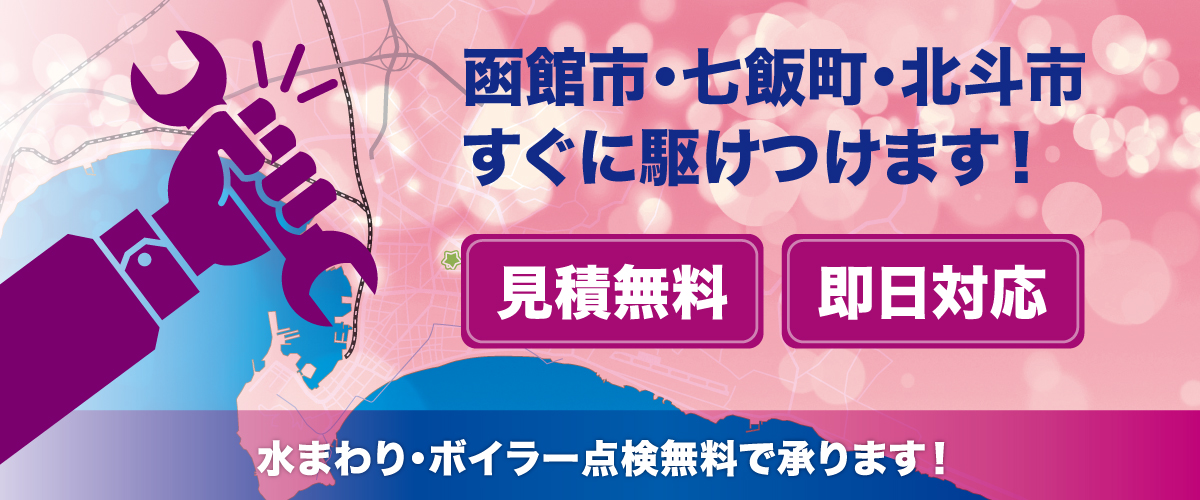 地元に貢献したいという思いから、地域住民の住まいのトラブルに対応しています。ライフラインを担う水道は、わたしたちの生活の全て、毎日の衣食住に欠かすことができません。使用頻度が多くなると、故障やトラブルも避けて通れません。また、温水機器に関わるボイラーの故障は冬場には耐えがたいものです。そんな住まいに関するトラブルが発生した時は函館を拠点とする当社へご相談ください。確かな技術とサービス・市内でのネットワークを駆使し、迅速丁寧に対応いたします。